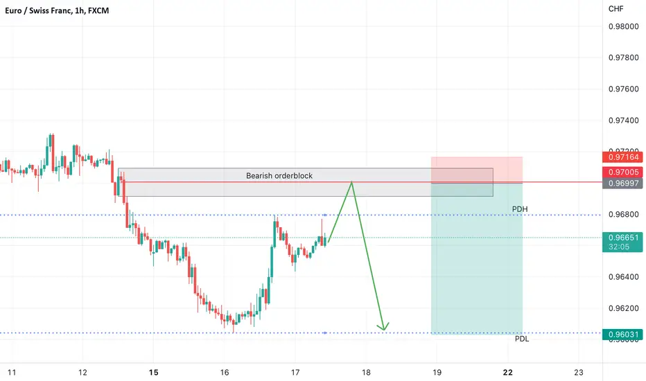 Here we are in a bearish market structure, so I am looking only for shorts. I expect price to go a little bit higher to take out liquidity above previous daily high and to fill the imbalance and if price rejects from bearish orderblock + institutional big figure 0.97000 I will open a short position.