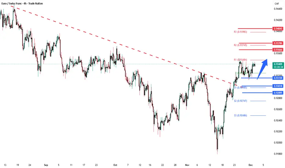 Bullish bias remains intact while the EURCHF holds above 0.9315 A sustained break below this level could shift momentum to the downside in the short term.