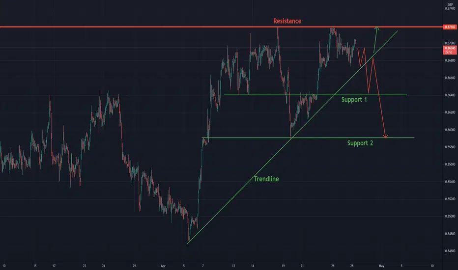 EURGBP is trading at multi days resistance level. it has test the resistance level earlier and failed to breakout on upside. According to chart pattern analysis , we might see downside in EURGBP from current level. One can take short trade on EURGBP with proper risk management and stop loss .