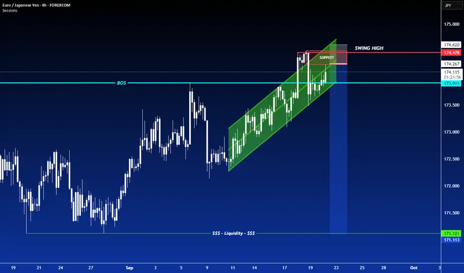 EUR/JPY has created a beautiful rising channel (bearish reversal pattern) at a major resistance area/zone.