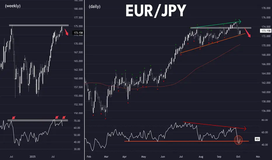 Caution: uptrend line has held so far. A break would confirm trend reversal.