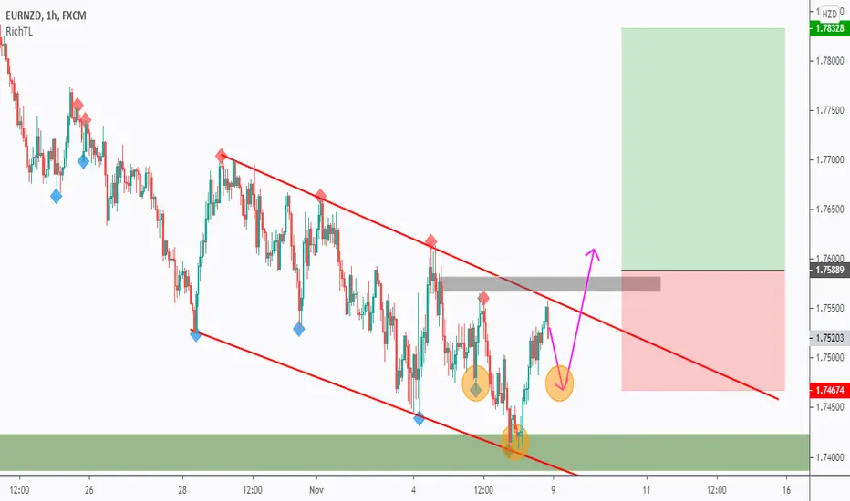 on DAILY: EURNZD is approaching a demand zone in green so we will be looking for buy setups on lower timeframes.