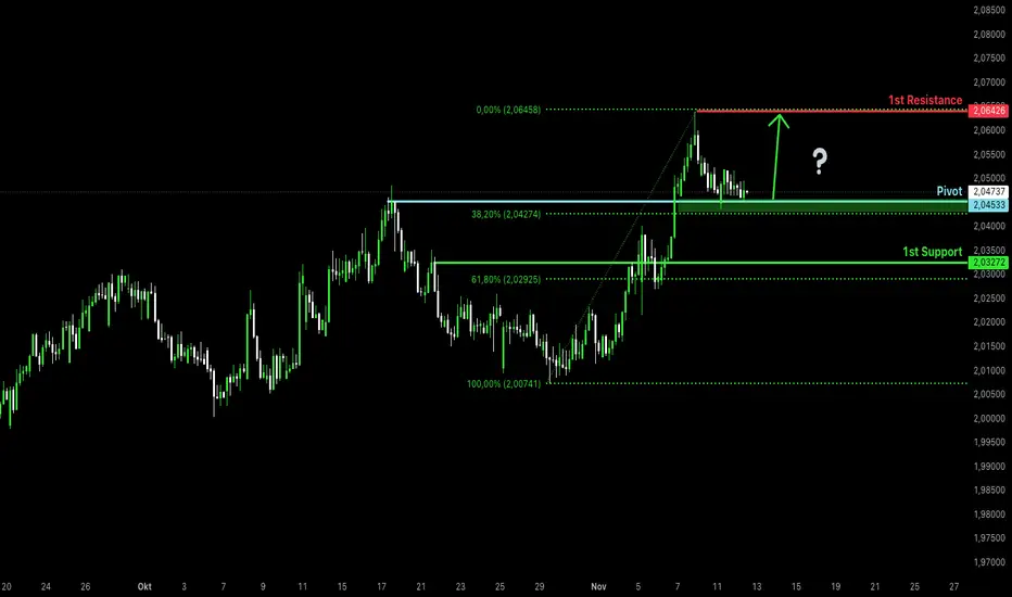 EUR/NZD is reacting off the pivot, which serves as a pullback support, and could bounce toward the 1st resistance, which acts as swing high resistance.