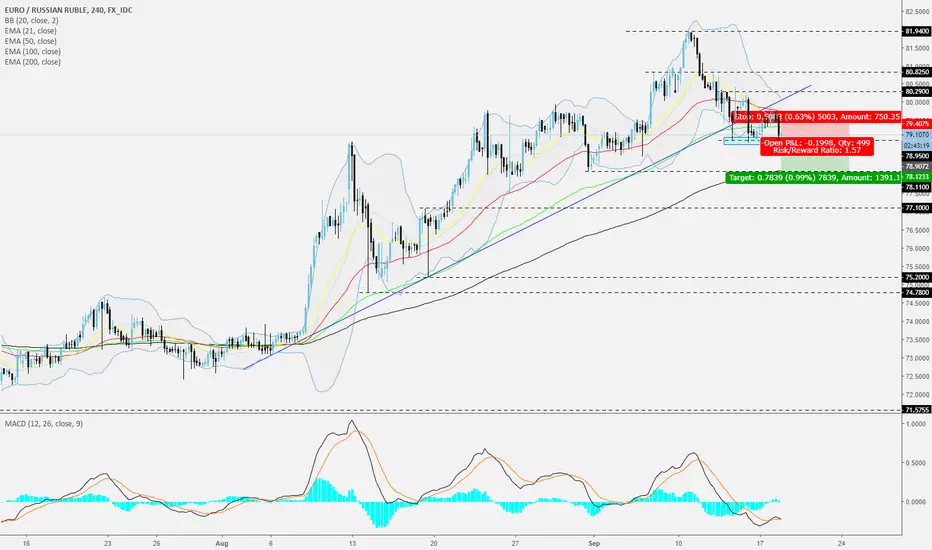 EURRUB has broken its short-term upside support line, taken from the low of the 6th of August. This way creating concerns over the possibility of going higher in the short-run. Also, we can see that the pair is currently resting slightly above the 78.95 support zone, marked by the low of last week. A break below the 78.95 could open the path towards the next potential area of support at 78.11, which also coincides with the 200 EMA. This is where the rate could stall for awhile, until the bulls and the bears figure it out who takes the driver's seat from there.