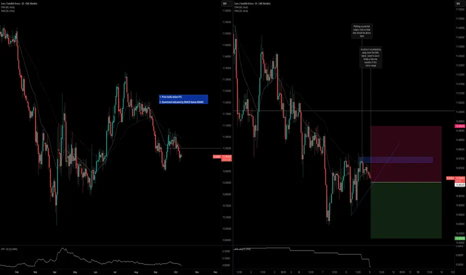 - Downtrend is indicated by EMA20 below EMA60