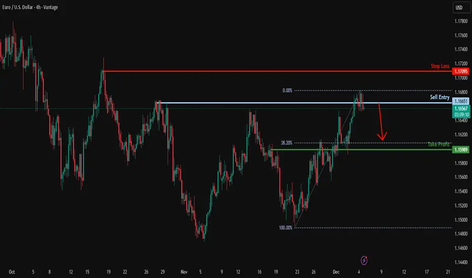 EUR/USD is reacting off the resistance level, which is a swing high resistance and could drop from this level to our take profit.