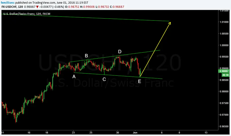 This is a text-book snapshot of an expanding triangle. The target is the trendline of the larger corrective structure.