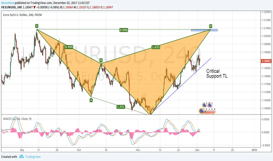 This bullish EURUSD views will be inline with my USDCAD short trade.