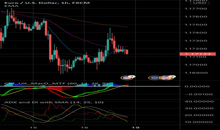 Last week when the market opened for EUR/USD we saw late sell signal on MACD with +D above -D on ADX. We saw a pullback to my 12 am (US time) preferred time frame entry.