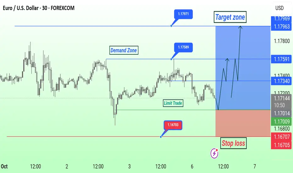 Price is approaching the demand zone for a potential buy entry around 1.1700.