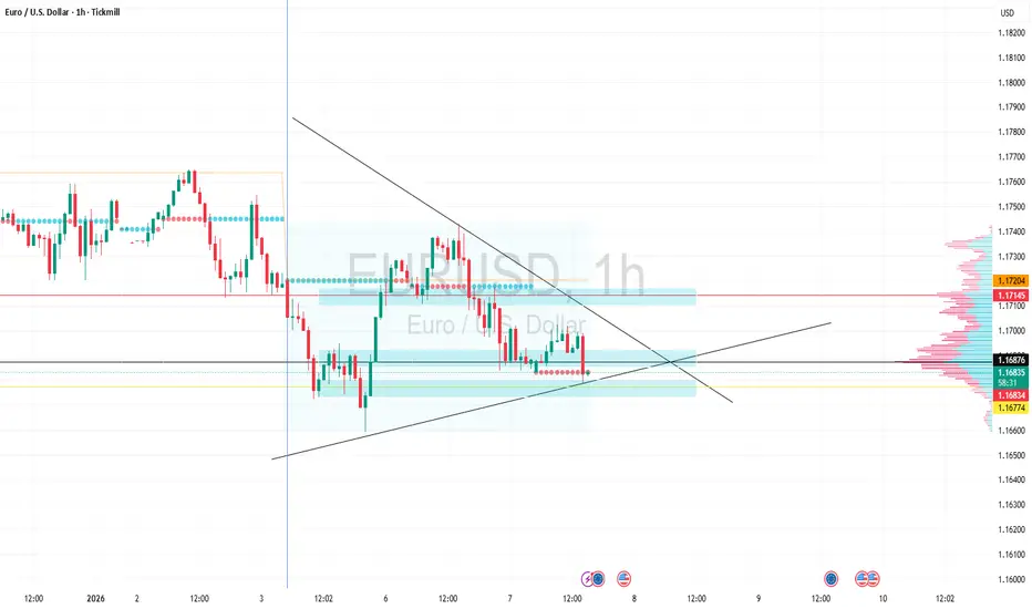Support: * The zone between 1.16774 – 1.16876. This is the immediate "hard" support. If a 1h candle closes decisively below 1.16700, the bearish trend is likely to resume.