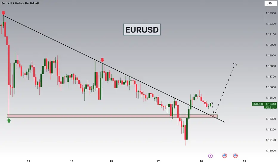 Hey Traders, in today's trading session we are monitoring EURUSD for a buying opportunity around 1.18300 zone, EURUSD was trading in a downtrend and successfully managed to break it out. Currently is in a correction phase in which it is approaching the retrace area at 1.18300 support and resistance area.