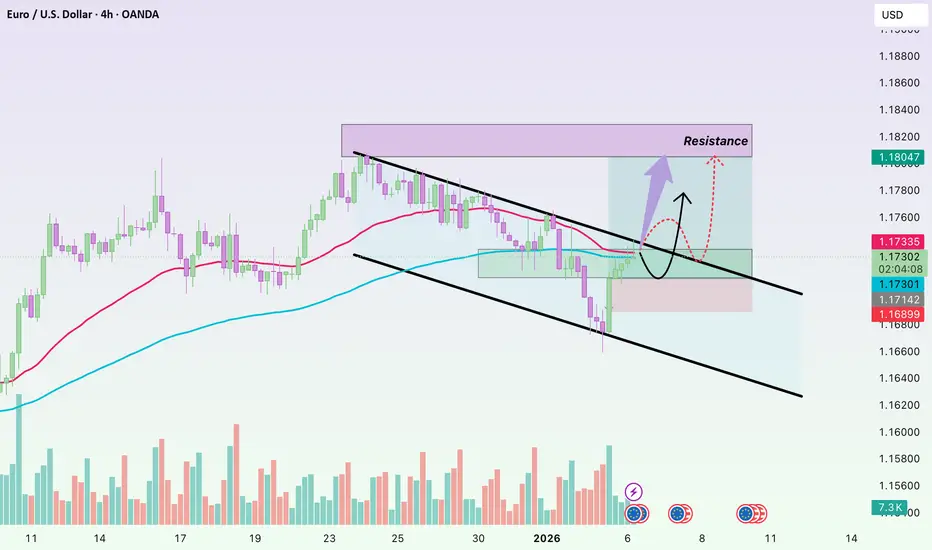 EUR/USD has just completed a fairly deep but well-controlled correction. The prior sell-off pulled price back toward the medium-term EMA zone around 1.1680–1.1700, and the subsequent rebound suggests selling pressure is no longer expanding, while buyers have started to step in to defend the broader structure.