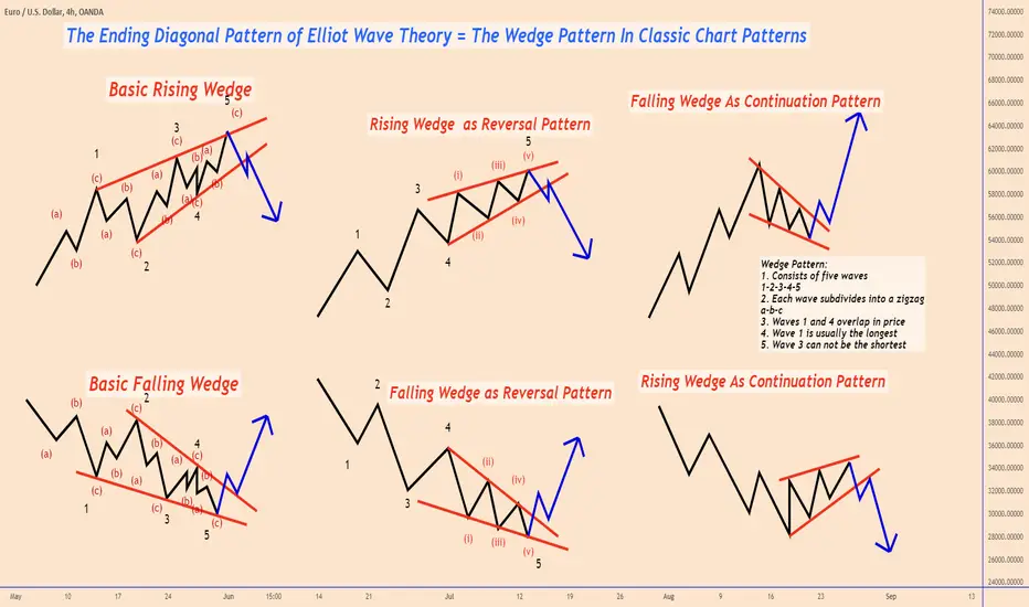 The Ending Diagonal Pattern of Elliot Wave Theory = The Wedge Pattern In Classic Chart patterns