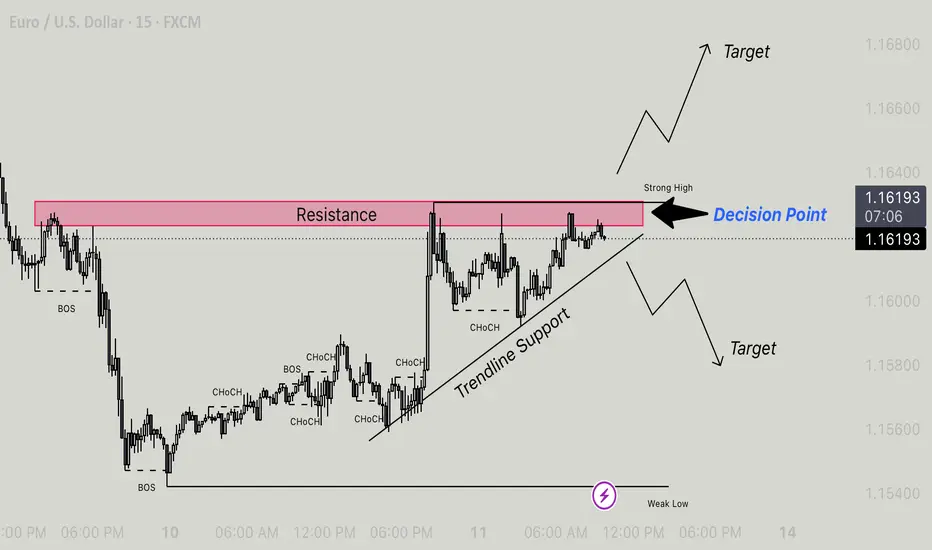 Weak Low: Vulnerable if price rejects the resistance and breaks below trendline.