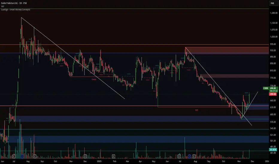 Trading at ₨683.15, up 6.74%, showing recovery from recent lows but still in a downtrend.