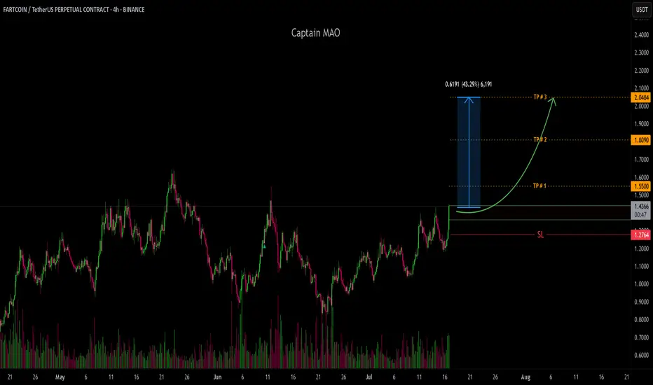 FARTCOIN/USDT – One of the strongest-performing memecoins in the current cycle, showing resilience and consistent upside momentum. After consolidating steadily, price has now broken out from the current resistance zone, indicating bullish continuation. Momentum is building, supported by sustained volume and strong community backing.