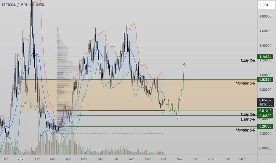 After an extended bullish cycle, Fatcoin has entered a period of sharp correction. The breakdown below $0.93 shifted momentum decisively, sending price lower toward key volume nodes. With price now approaching $0.51, which aligns with the point of control, traders are closely watching for signs of a reversal. Should this region fail, downside pressure could extend further toward $0.29.