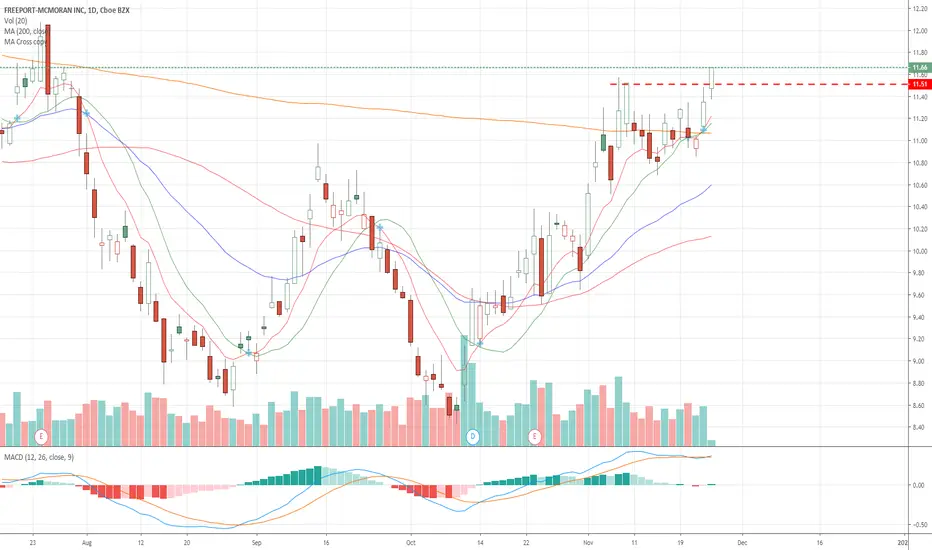 Time to go long FCX. The sector is moving higher and FCX is breaking out to new highs.