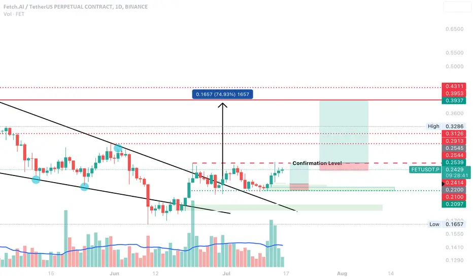 • Since it broke out of the Descending Wedge, FET is ranging between 0.21 – 0.255 USD.