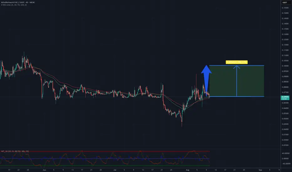 Analysis of the MindNetwork (FHE/USDT) chart on a 4-hour interval strongly indicates a high likelihood of reaching the 0.10 USD target. The current price, at approximately 0.07093 USD, is positioned at a key support level of 0.065 USD, which is very likely to hold in the near term. The moving averages (MA) confirm trend stabilization, while recent candles with clear buying pressure and increasing volume suggest a dynamic upward movement. Breaking through the resistance level of 0.075-0.080 USD seems almost certain, paving the way for a decisive rise toward 0.10 USD. With the current momentum and positive market signals, achieving the 0.10 USD target is highly probable in the upcoming sessions.