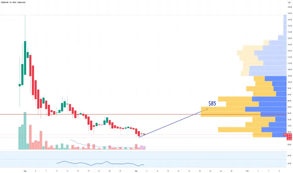 Analyzing the options chain and the chart patterns of FIG Figma prior to the earnings report this week,
