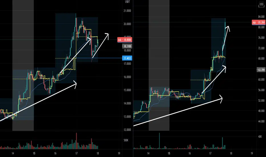 The strongest uptrending cryptos LUNA and FIL provided valid re-entry signals now trying to hold them as long as possible (trailing stop below prior 1 hour and daily lows...)