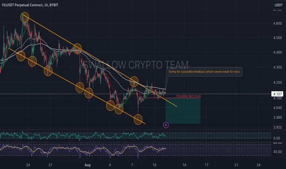 FIL coin is next on our watchlist with an attempt to go for a breakout but still behind the 200EMA line. We are looking here at an potential breakout attempt but for now it seems weak which can mean that this one will fail and we will go back to that small bearish trend we have on 1 hour! - Keeping eyes opened here!