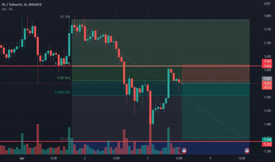 Filecoin is bouncing off the Fibonacci 0.382 level and bouncing off the resistance level. Bearish trend is likely to continue and reach the resistance level at 5.34.