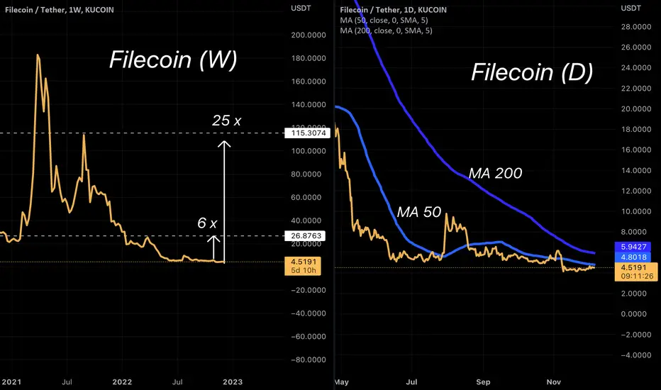 There are probably still some time left until we see daily MA50 and MA200 crossing. But be prepared - when cross comes...Filecoin gonna move fast. Look at the last time when Filecoin crossed the MA50. I think we are close to the bottom and I will start DCA into Filecoin - I will definitely not wait for Bitcoin 10K.