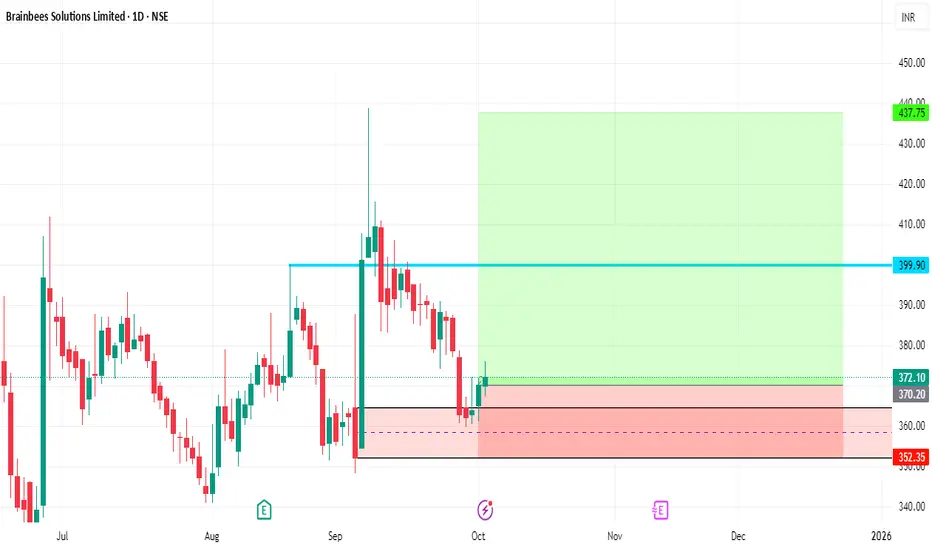 Sharing a fresh daily chart setup for Brainbees Solutions Limited (NSE:FIRSTCRY). The price has just bounced from a strong support zone in the ₹370–₹352 range, recovering after a recent downtrend. Volume at this level is strong, indicating potential renewed buyer interest.