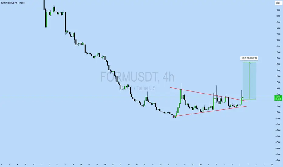 FORM is breaking out of a falling wedge pattern on the 4H timeframe. Current price is $1.23 with a target near $1.85, showing about 50% potential upside. The breakout indicates growing bullish momentum, suggesting a possible continuation move if support holds. Always use proper risk management.