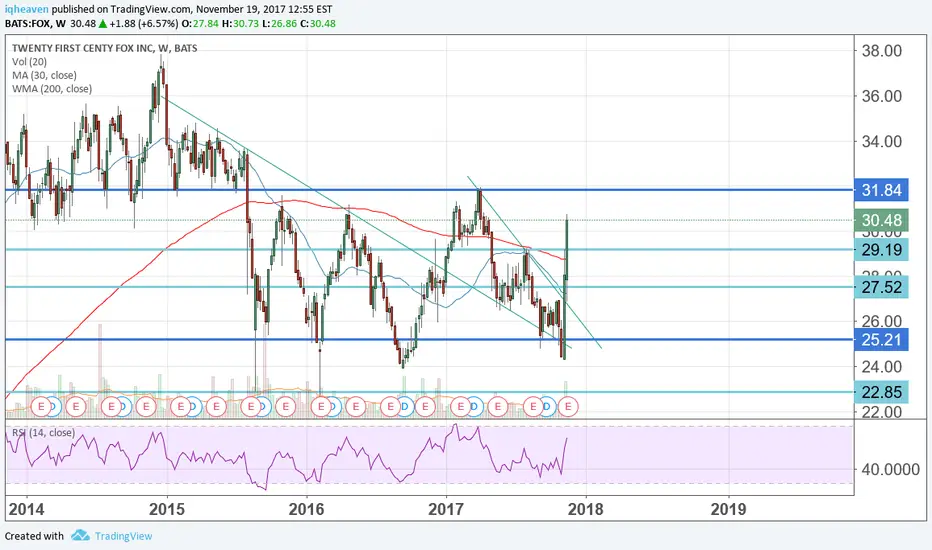 $FOX trend line and falling wedge on text book.