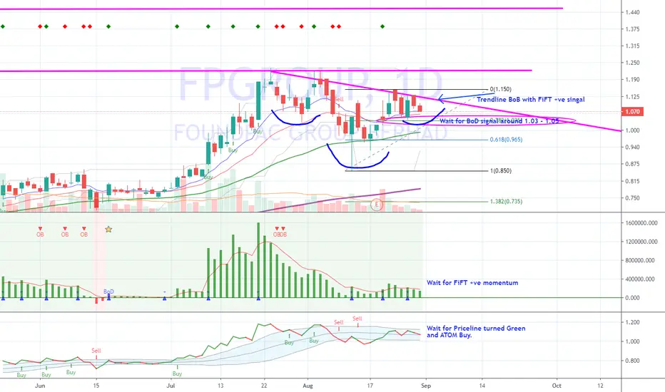 Scenario 1: Look for BoD Signal or Buy on bounce around 1.03 - 1.05 (Bullish candle with higher volume)