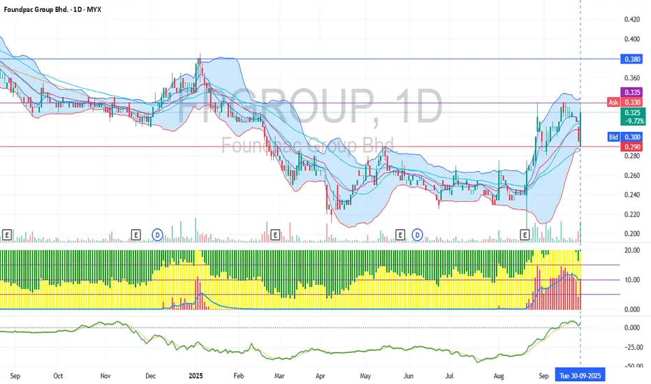 The follow show the chart has minor pullback before breakout. BO:0.335,SL:0.29,TP:0.38