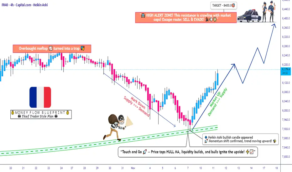 A strong bullish plan has been confirmed on the France 40 index 🇫🇷, backed by triangular moving average dynamic support and a Heikin Ashi bullish reversal candle formation — signaling potential upward pressure building in the French market.