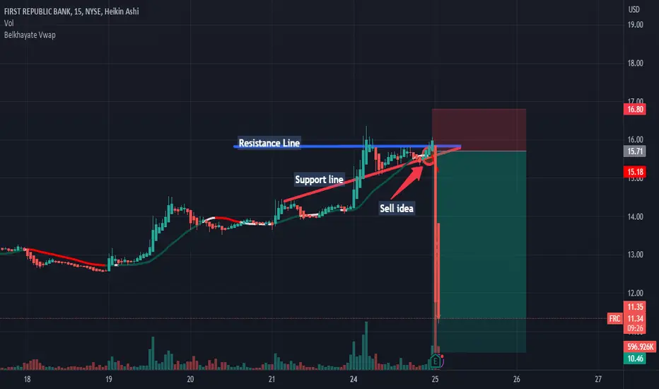 Sell idea on FRC as you see on the chart after the breakout of vwap and support.Thanks!