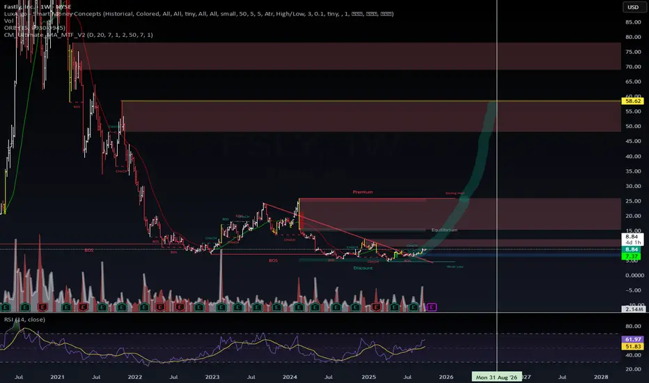 • Technical Setup: Weekly compression breakout forming after long base. Strong BOS (Break of Structure) + RSI trending up. Long-term measured move points toward $25–30, with macro extension levels eyeing $58 if momentum builds.