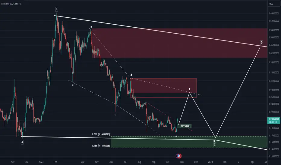 The FTM symbol is inside a very large structure. Wave C of this large structure is a diametric, whose sides I marked with dashed lines. Now wave e is ending and we are entering wave f.
