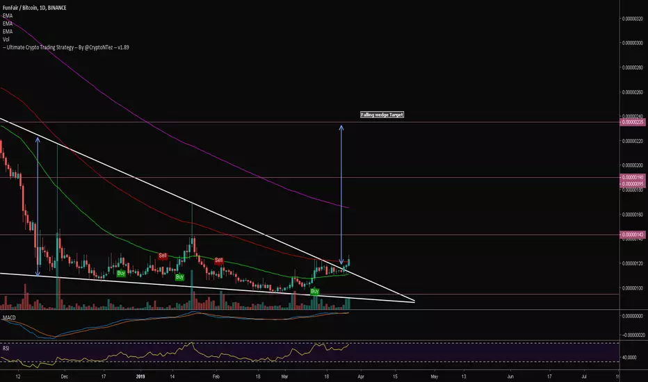 FUN, took some days but its finally breaking from the massive falling wedge...