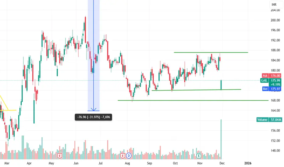 GAIL was right at the edge of a clean breakout above ₹187.50.