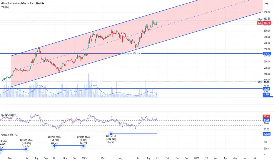 GAL daily timeframe, moving in a channel