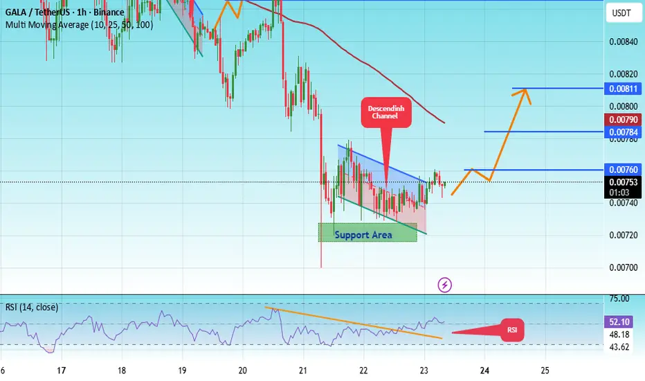 There is a key support zone in green at 0.00721, representing a strong support point.