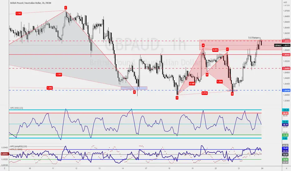 Despite the current bullish trend in GBPAUD, the market is showing signs of a potential shorting opportunity on the 5-0 pattern, with the 3-bar reversal pattern. This presents a unique trading opportunity for aggressive traders to engage in a short-term trade at 1.8577, with a stop loss set above 1.8605 and an appropriate buffer.