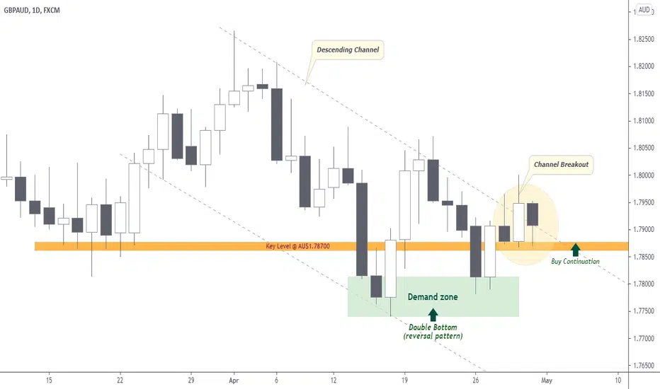 iii. Since finding bottom @ AU$1.77500, the appearance of a Double Bottom - a strong reversal pattern emphasizes a rally as the price continues to find Higher highs which culminated into what looks like a Channel Breakout (see chart) during last week trading session.