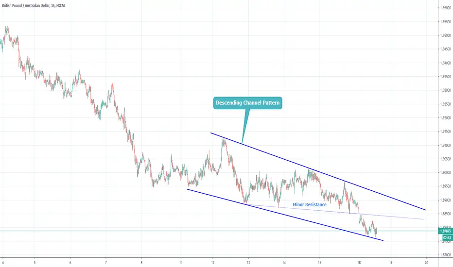GBPAUD is Trading in Descending Channel Pattern. it is trading very near to support level of channel pattern. we might see bounce back from current level towards the minor resistance and then resistance line of descending channel pattern. one can initiate long side trade with stop loss just below the support lone of the descending channel pattern.