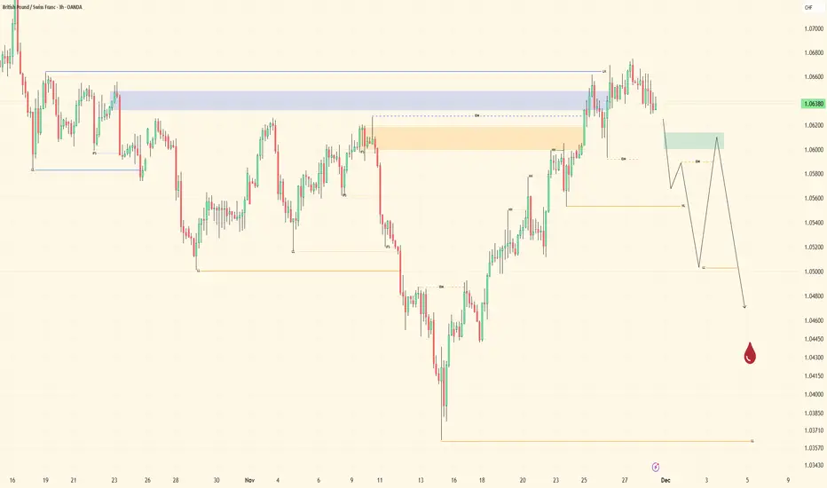 GBPCHF remains bearish, showing clear lower highs and lower lows. Price recently climbed to take out buy-side liquidity and mitigated our HTF order block, confirming downward pressure and maintaining the dominant trend.