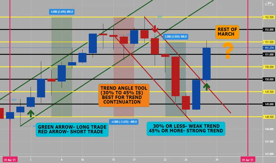 Best Trend Angle for price action is in between 30% to 45%, if price is above 45% trend is too strong and if price is below 30% trend is too week.