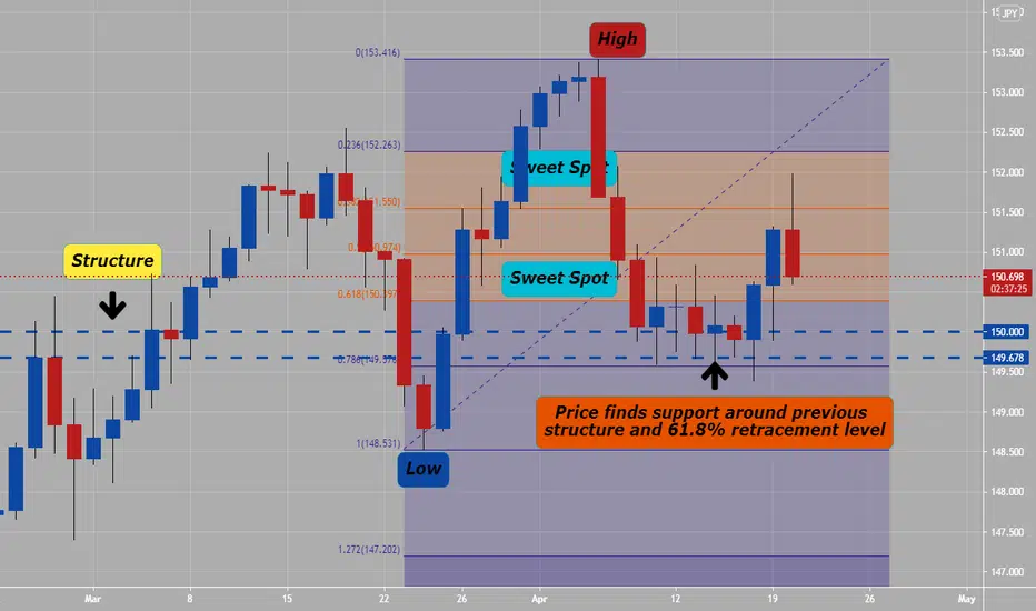 If you’re waiting to enter a trade on the retracement of a move, there is a sweet spot in which you’d like to see price bounce and hopefully continue the in the original direction. That sweet spot ranges from about the 38.2 level to the 61.8 level. Note: The 50.0 level is not a Fibonacci ratio, but is usually included in these measurements because price reverses at the 50% retracement level so frequently.