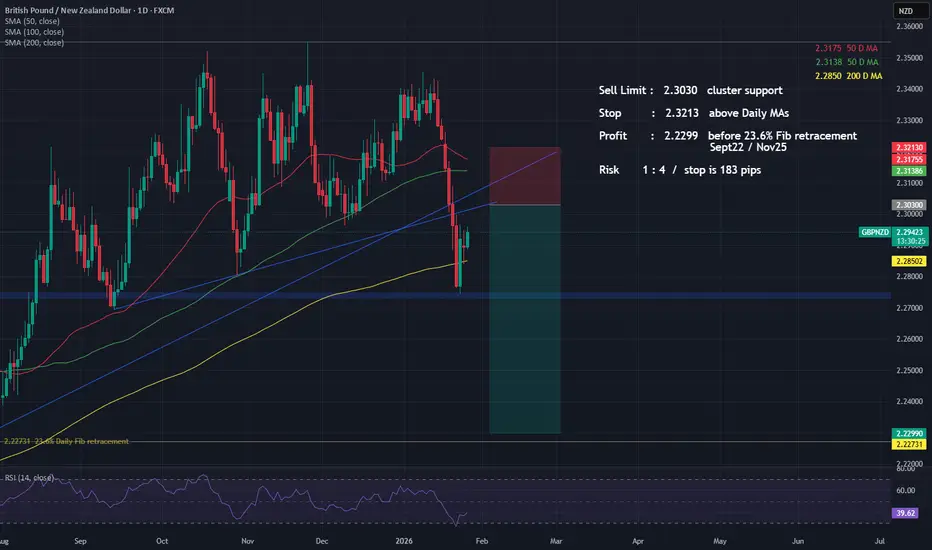 Friday 30th January UTC-03:50am. I am cancelling this trade GBP/NZD because price action is too far away from my entry. I will look again next month.Disclaimer